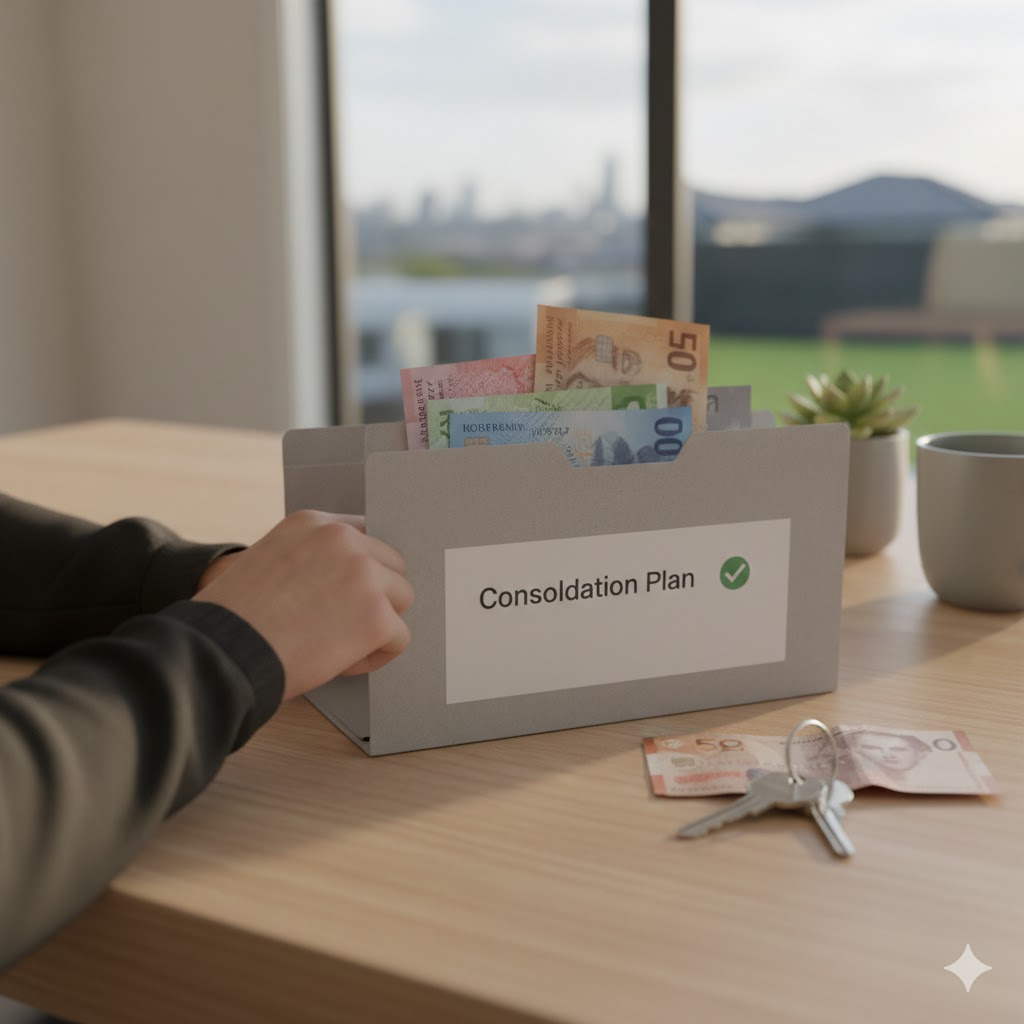 Debt consolidation involves taking out a new loan to “wrap” multiple high-interest debts—such as credit cards at 19.7% or store cards—into a single monthly repayment. Ideally, this new loan carries a lower interest rate, simplifying your budgeting and potentially saving you thousands in interest over the loan term. For many whānau, consolidating debt can improve mental health and family stability by providing a “definite timeline” for when they will be debt-free. However, it is critical to avoid the trap of running up new debt on cleared credit cards while paying off the consolidation loan.