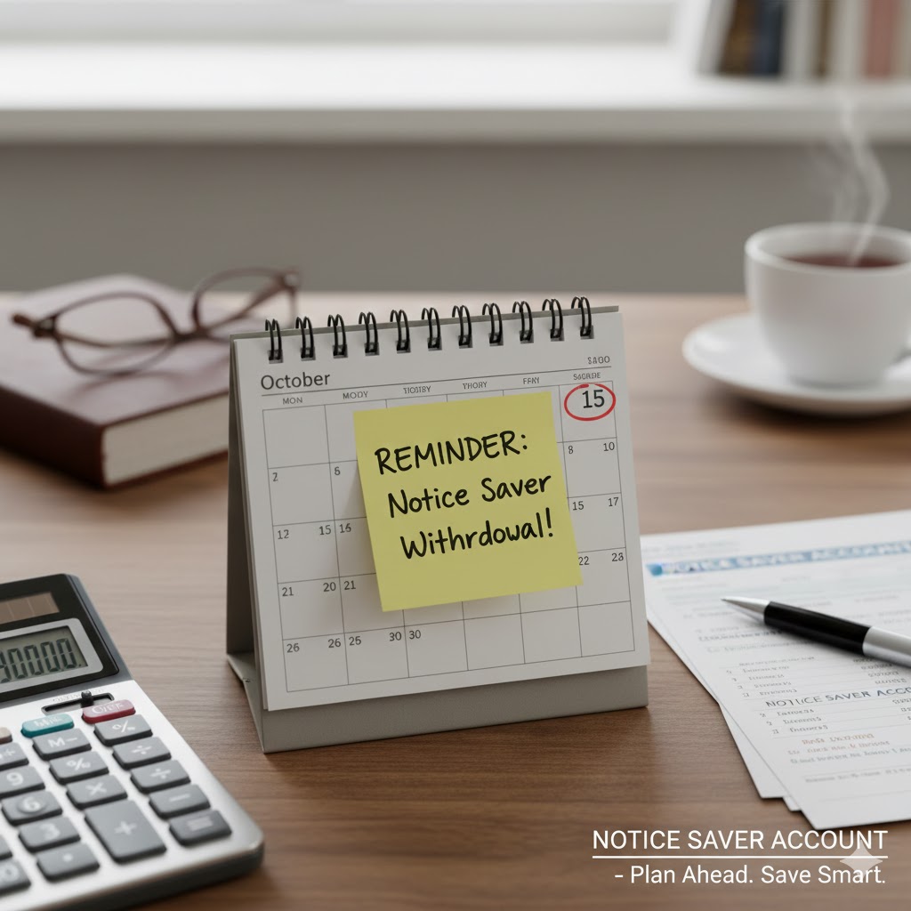 Notice saver accounts require you to provide advance notice before withdrawing funds, usually 32, 60, or 90 days. In return for limiting immediate access, banks offer higher interest rates than on-call accounts. These accounts are designed for savers who can plan withdrawals ahead of time and do not require instant access to their money.