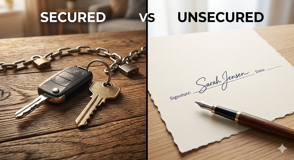 A secured loan requires an asset like a car or house as collateral, while an unsecured loan is based solely on your credit history and income.